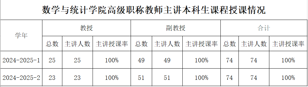 伟德国际VICTOR1946高级职称教师主讲本科生课程授课情况