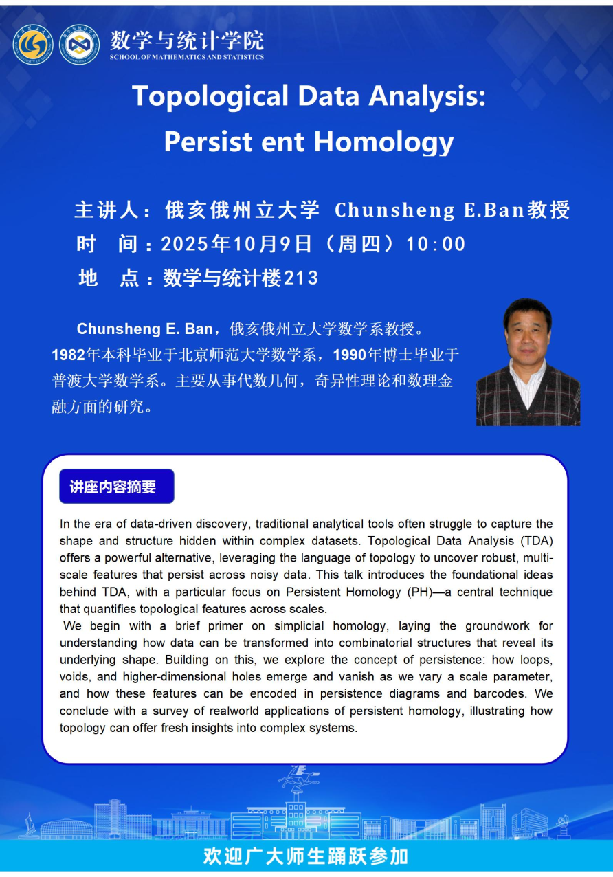俄亥俄州立大学Chunsheng E.Ban教授-Topological Data Analysis: Persist ent Homology