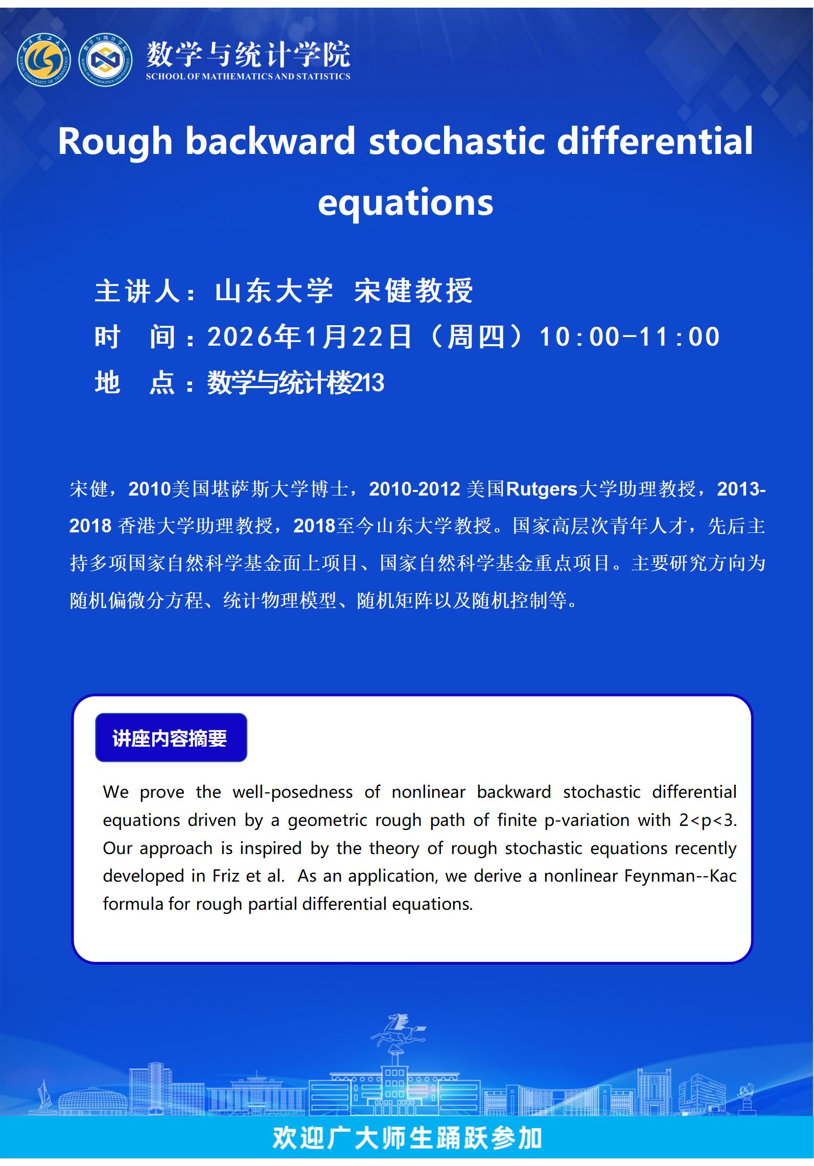 山东大学 宋健教授-Rough backward stochastic differential equations