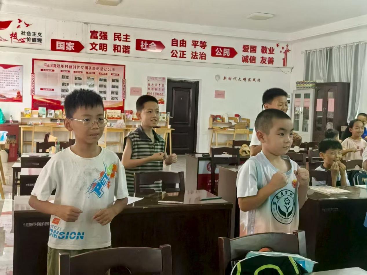课堂尾声,孩子们在志愿者的指挥下进行大合唱,稚嫩而真挚的歌声回荡在校园。无论是激昂的爱国旋律,还是温馨的成长之歌,都唱出了他们对生活的热爱和对未来的憧憬。志愿者们也被孩子们的热情所感染,现场氛围温馨而热烈。