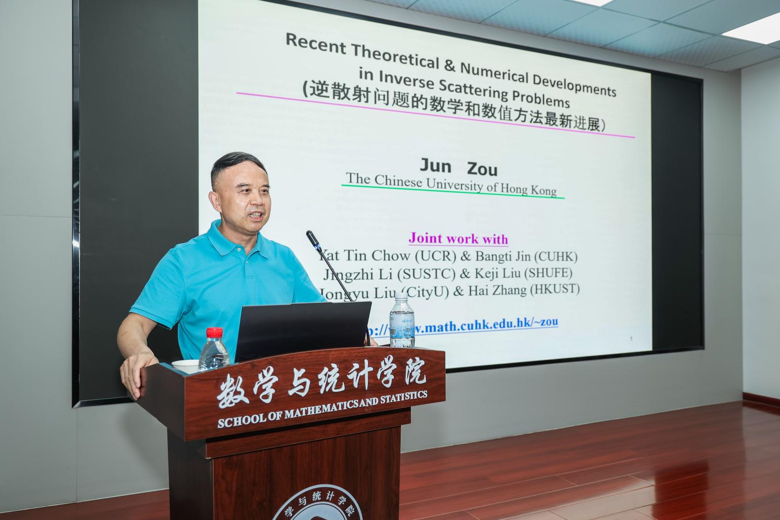 发布日期:2025-05-215月20日下午,伟德国际VICTOR1946特邀香港工业和应用数学学会会长,香港数学学会副会长、美国工业和应用数学学会(SIAM)会士和美国数学学会(AMS)会士、香港中文大学卓敏数学讲座教授、数学系系主任邹军教授为公司师生带来一场题为“反散射问题的一些基本数学理论和数值方法的发展回顾”学术报告。报告会由何朗经理主持,王佩佩书记、曾小雨副经理及公司相关领域教师和研究生参加了报告会。