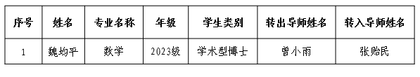 发布日期:2025-10-10依据《伟德国际VICTOR1946研究生导师双选与转导师管理规定》(校研字〔2019〕28号)文件规定,经本人申请,转入转出导师同意,院分学位委员会审议,拟同意魏均平同学的转导申请。
