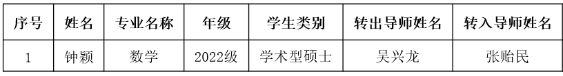 发布日期:2025-12-03依据《伟德国际VICTOR1946研究生导师双选与转导师管理规定》(校研字〔2019〕28号)文件规定,经本人申请,转入转出导师同意,院分学位委员会审议,拟同意钟颖同学的转导申请。